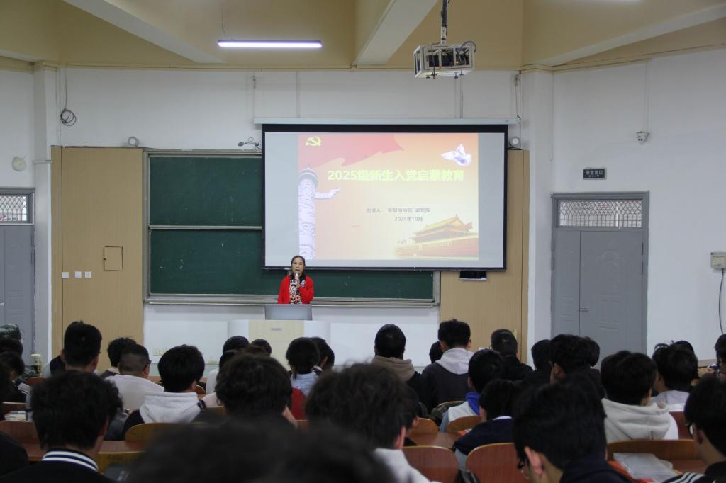 专职组织员梁军萍以“知史爱党、初心如磐”为主题,系统梳理了中国共产党波澜壮阔的光辉历程与祖国取得的辉煌发展成就,阐述了党的性质、宗旨与历史使命。她围绕“为什么入党”、“怎样才能入党”、“入党后要怎么做”等问题,结合入党条件与党员义务,引导新生端正入党初心,构建对党的全面、理性认知。员工党支部书记张琦聚焦“知行合一,行动入党”的实践要求,重点讲解了树立正确入党动机、明晰党员发展流程、规范撰写入党申请书等关键环节。她特别强调了共青团员与共产党员不能信仰宗教的政治纪律,引导新生树立科学的民族观与宗教观。结合支部优秀毕业生党员的先进事迹,张琦以榜样的力量激发新生的进取心,并在互动问答环节中,针对同学们普遍关心的问题进行了细致解答,鼓励大家从思想和行动上主动向党组织靠拢。