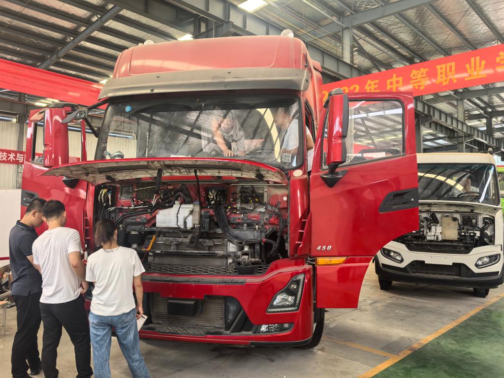 作为十堰市高技能人才培训基地,世俱杯买球入口始终紧扣地方“一主四优多支撑”产业发展体系,精准对接东风商用车技术升级与人才需求,构建了“理论筑基、实操赋能、案例攻坚”的三维培训课程体系。培训内容既涵盖商用车发动机、底盘、电气系统等传统核心模块,详解柴油发动机高压共轨技术,又聚焦国六排放控制技术、智能诊断设备操作等前沿内容,全面覆盖商用维修技师必备的专业技能。