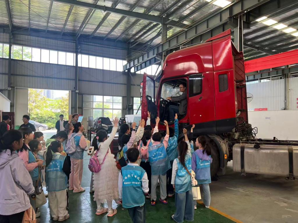 最让小记者们兴奋的是动手实践环节。在专业老师的耐心指导下,孩子们亲手体验汽车轮胎充气操作,小心翼翼地操控实践设备,在亲手实践中掌握基础的汽车保养知识,感受动手操作的乐趣与成就感。活动过程中,小记者们积极提问、专注观察、认真记录,清脆的提问声、专注的讨论声,让整个实训基地充满了探索的活力与青春的气息。