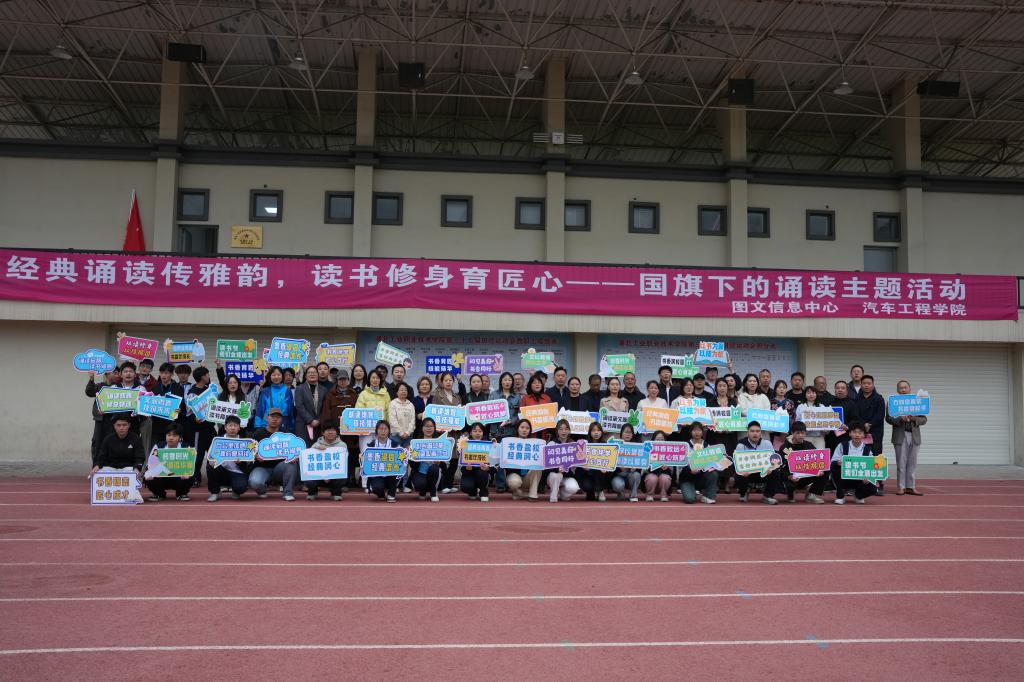 经典诵读环节,8名员工代表领诵儒家经典《大学》名篇选段,全体师生齐声跟读。“大学之道,在明明德,在亲民,在止于至善”、“自天子以至于庶人,壹是皆以修身为本”……铿锵诵读声回荡运动场,字字箴言尽显中华经典的文化力量。师生在沉浸式诵读中体悟修身立德、治学成才、匠心筑梦的深刻内涵,生动践行“经典诵读传雅韵,读书修身育匠心”的活动主旨。